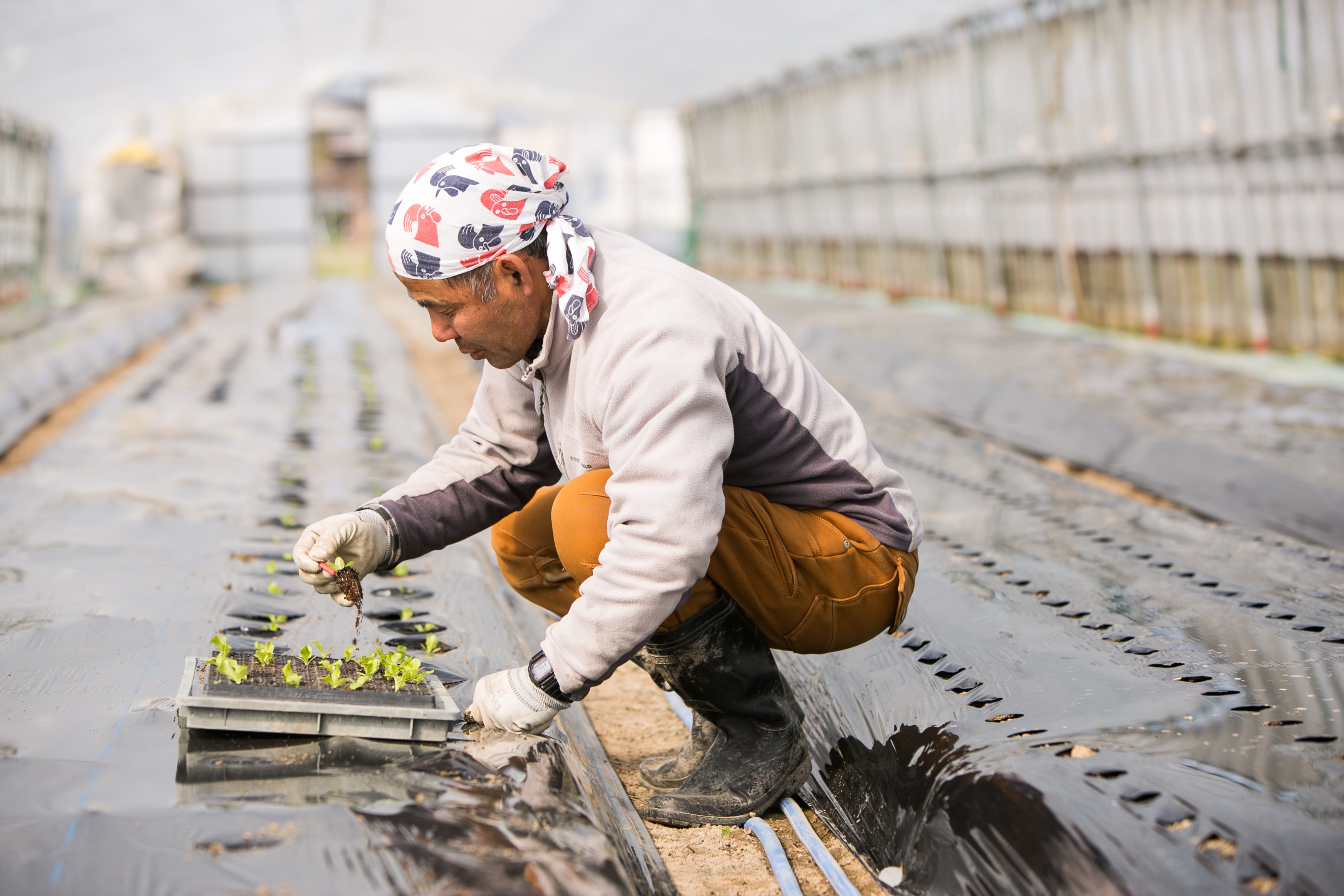 無農薬、有機肥料で年間多品目の野菜を生産しています。堆肥も畑の残菜で作り、循環型農業を実践しています。
